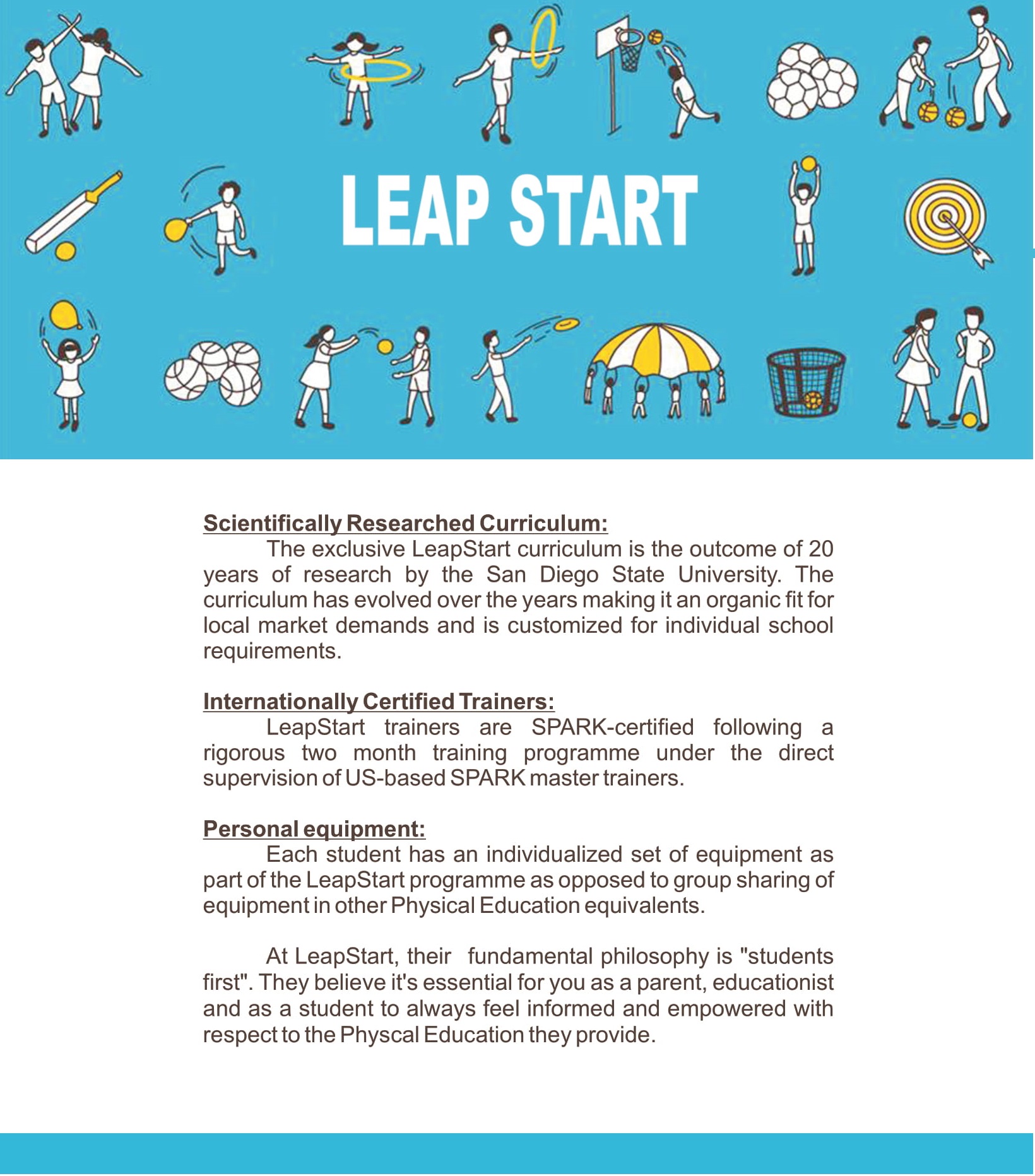 Physical games are an integral part of our curriculum. Children are given an opportunity to take part in different games and sports as per fixed slots during the week.